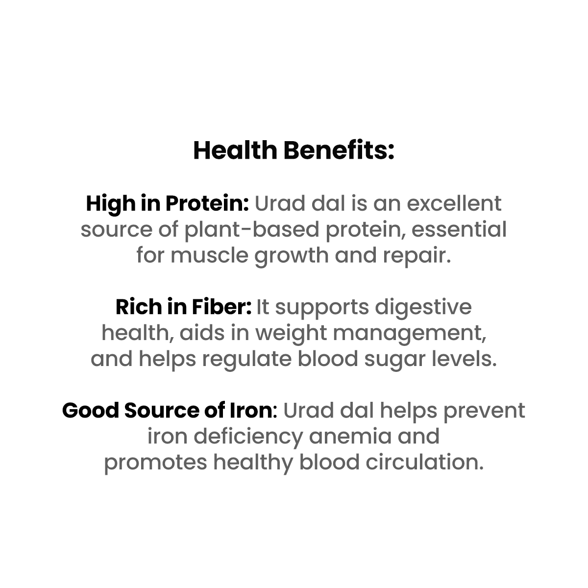Urad dal is an excellent source of plant-based protein, essential for muscle growth and repair.
